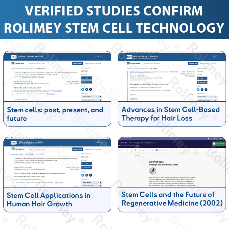 Rolimeyยฎโs exclusive stem cell complex penetrates deep into the scalp to activate โdormantโ hair follicle cells, restoring their natural growth cycle and promoting new hair growth. Noticeable resultsโsuch as reduced hair loss and reactivated folliclesโcan be seen within days, offering a true root-cause solution for hair regeneration.